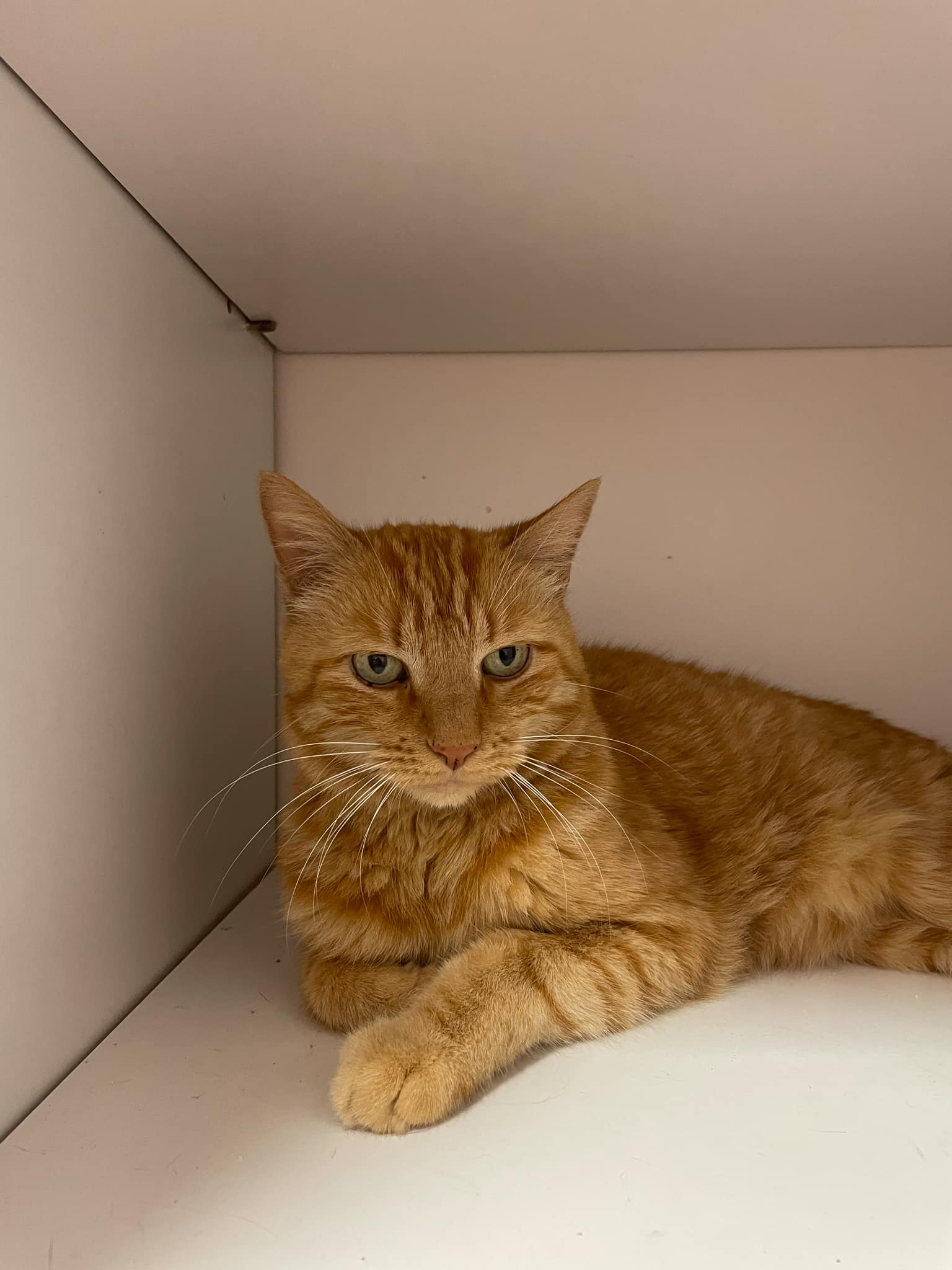 Encore assez tendu de son arrivée au refuge, Firefox est un vieux matou qui reste encore très vigilant à l’approche, et est arrivé en raison de son caractère difficile.