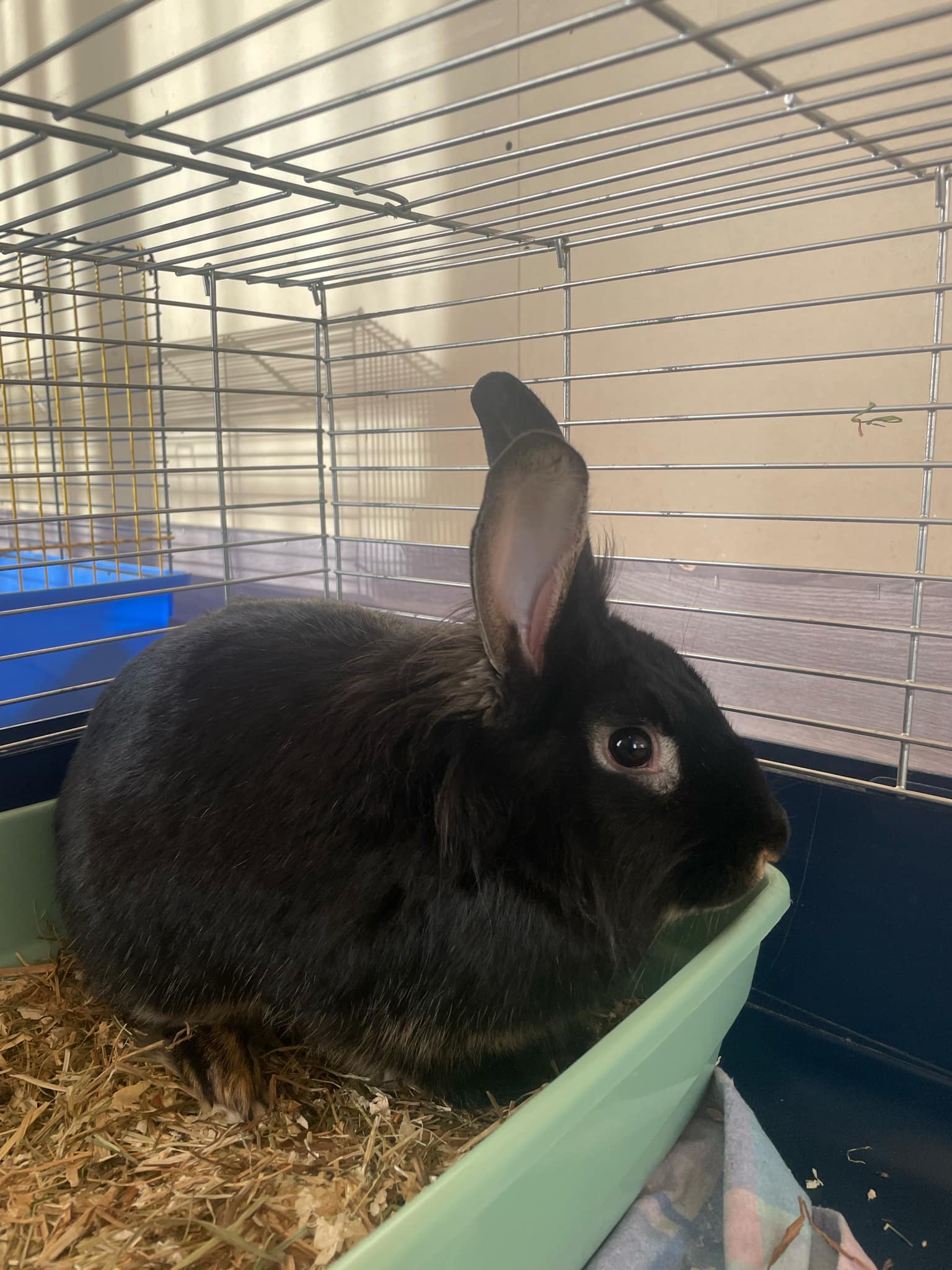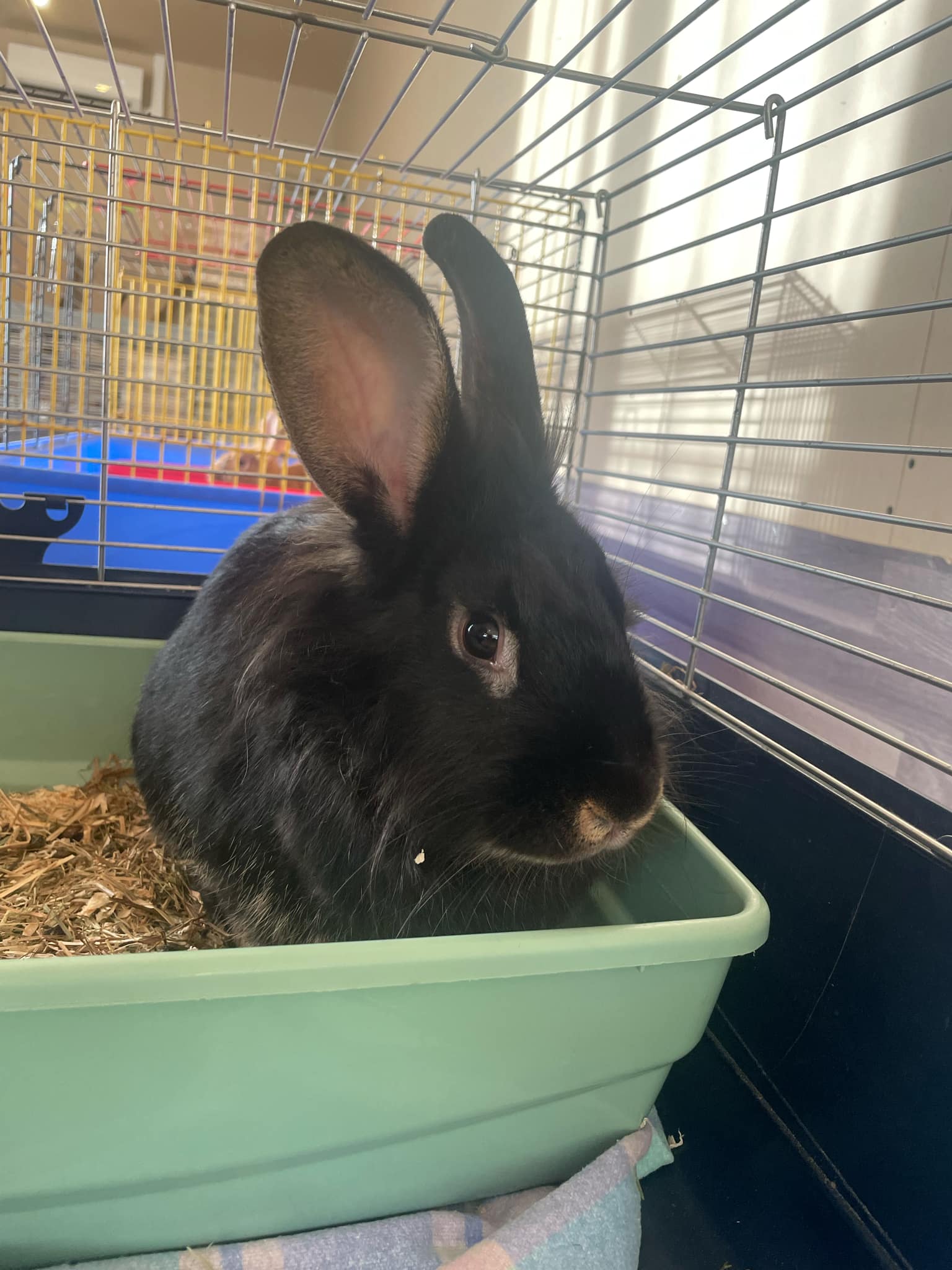 Cette lapine est de grande taille et sans doute issue de lapins de fermes, donc ne vous faites pas surprendre par son gabarit, même si ça ne se voit pas sur la photo!