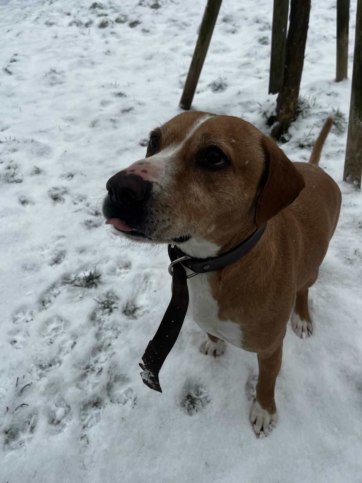 Elliot est un chien sympathique mais avec un caractère affirmé. Il se montre dominant et réactif avec ses congénères, il faudra donc travailler ce point avec lui.