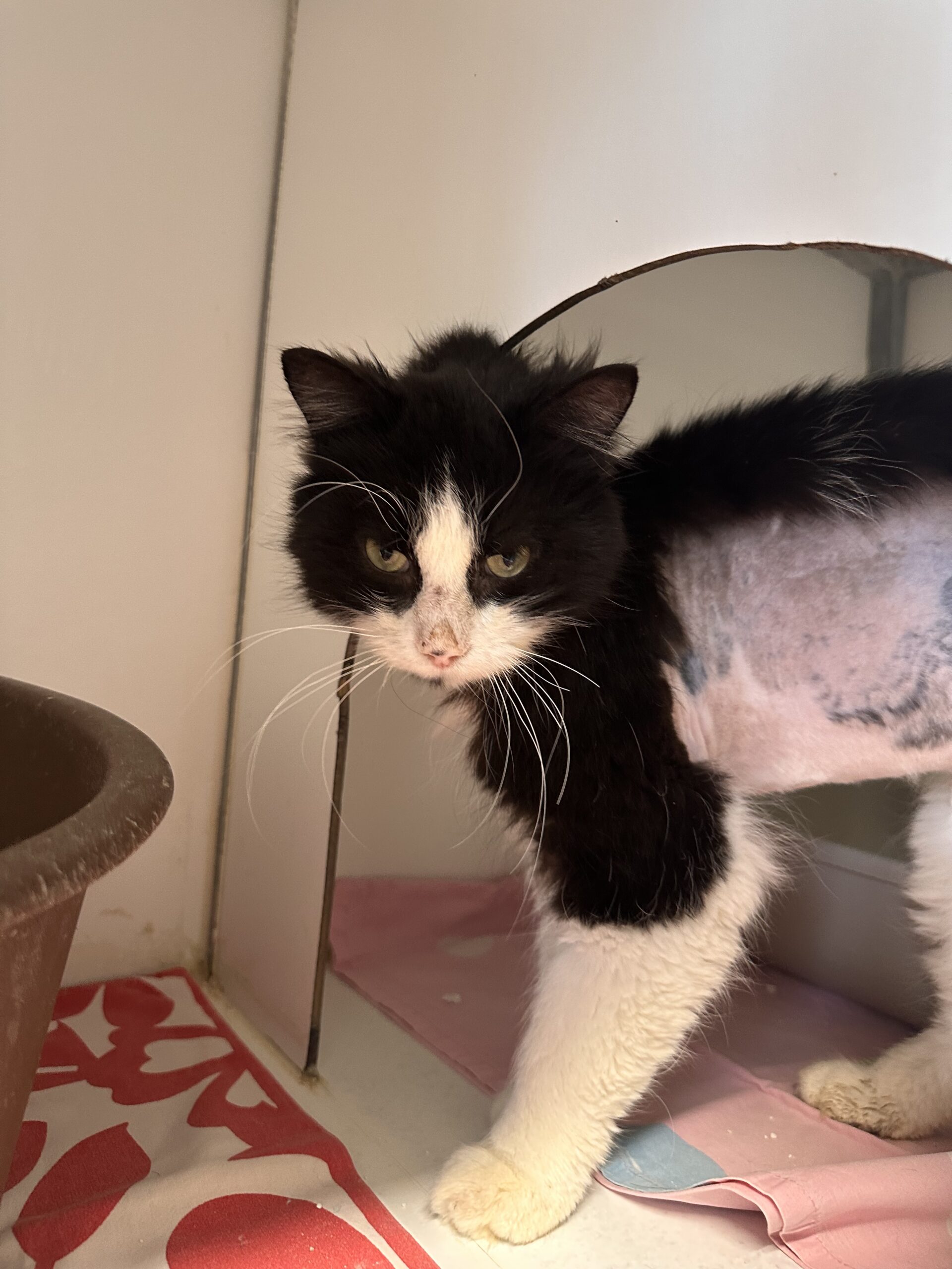 Néo est un jeune chat bavard et très gentil! Nous avons du le tondre car il avait des énormes bourres de poils, ce qui lui fait un petit look punk!