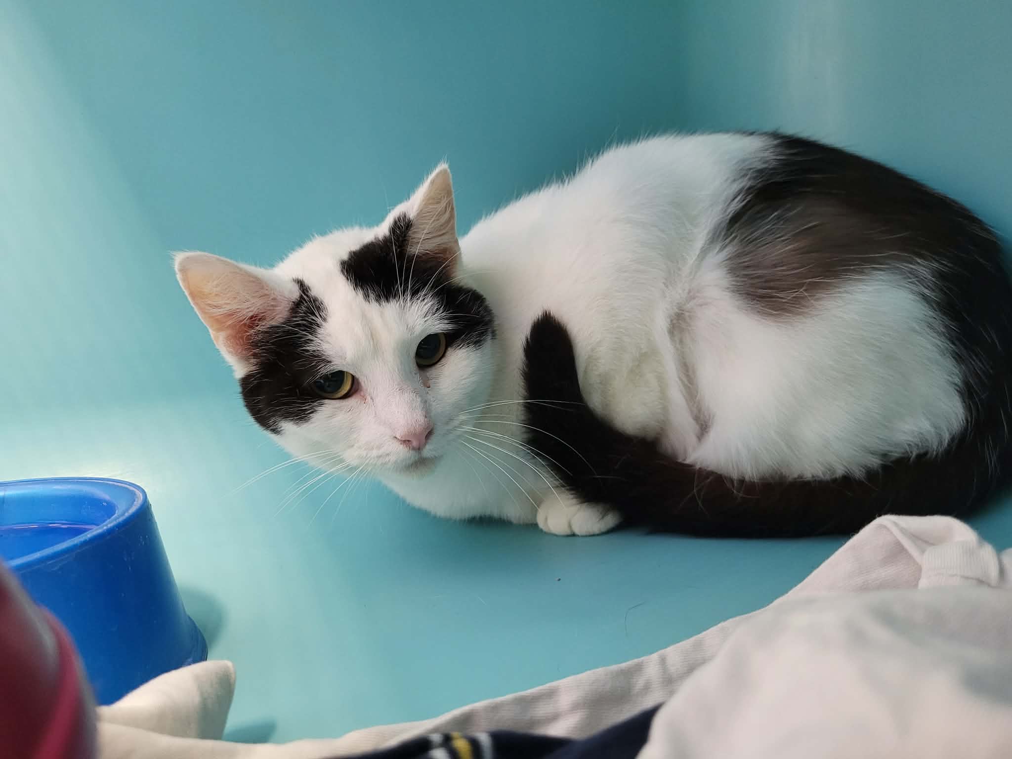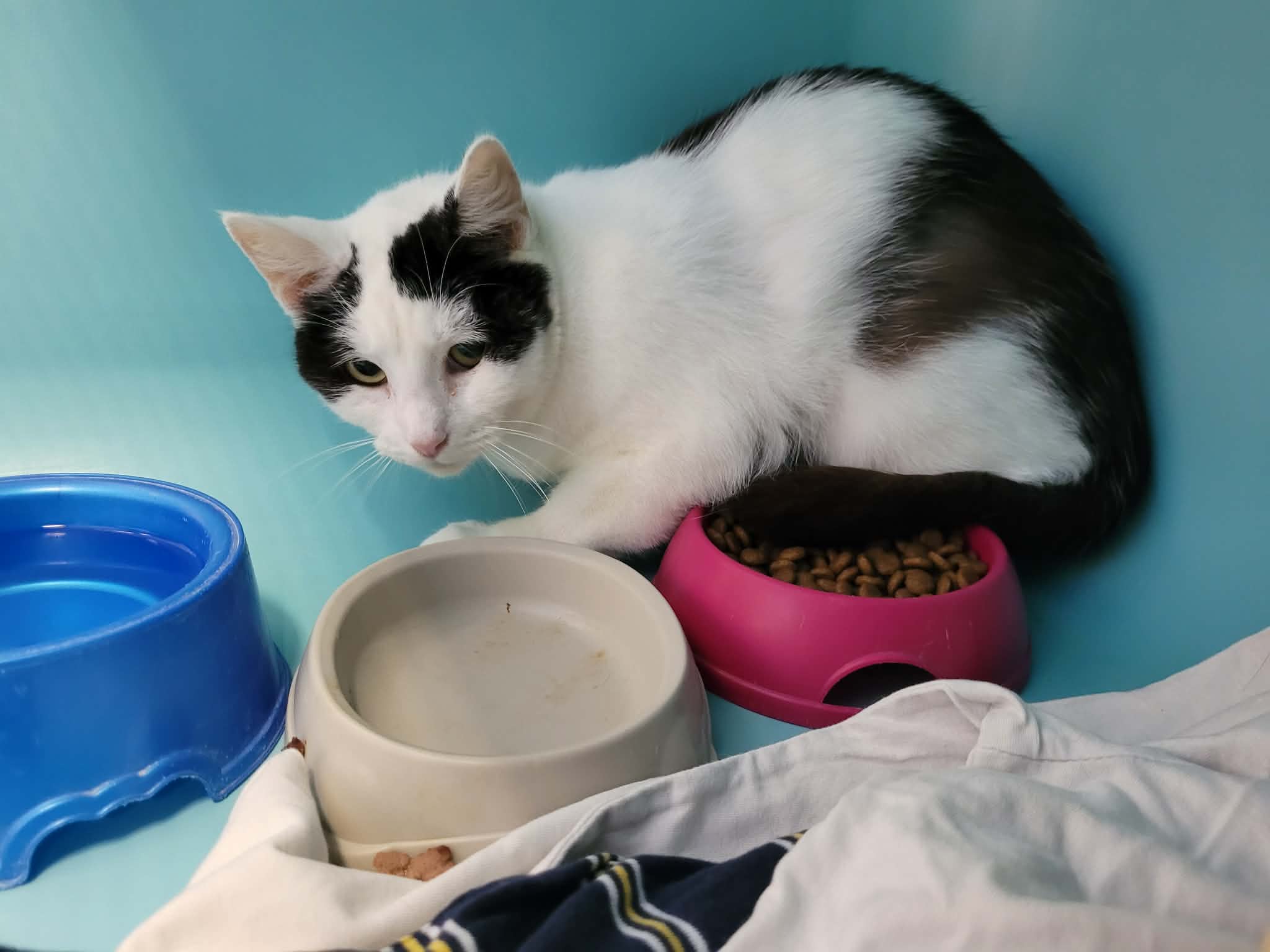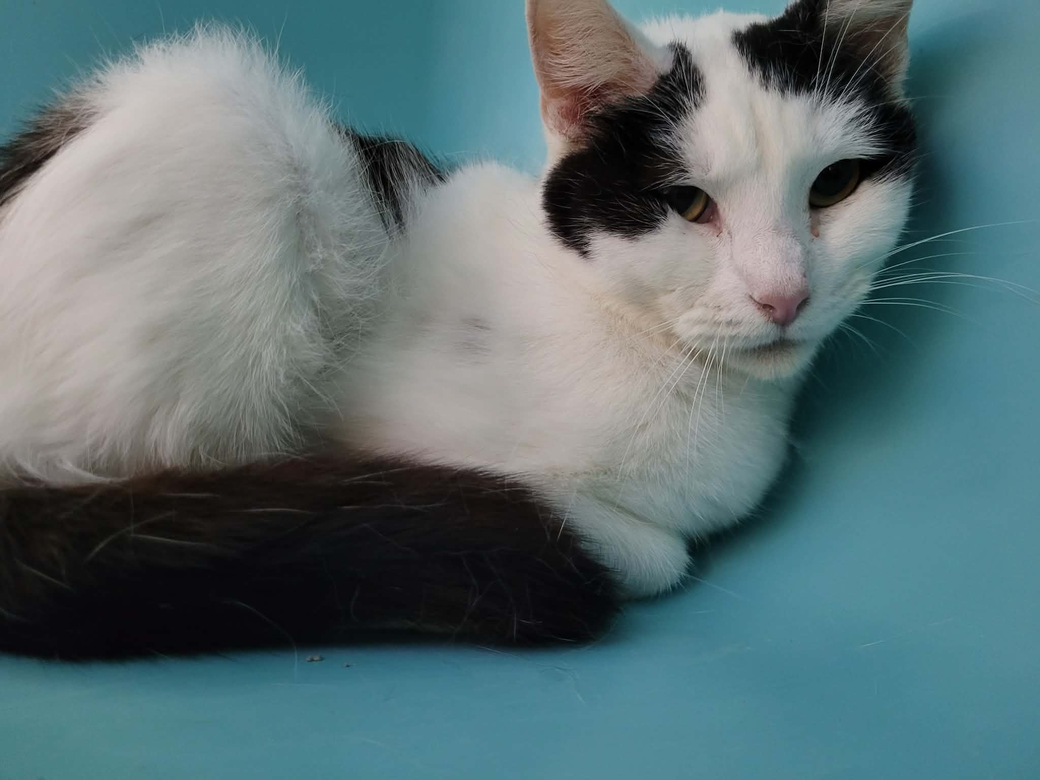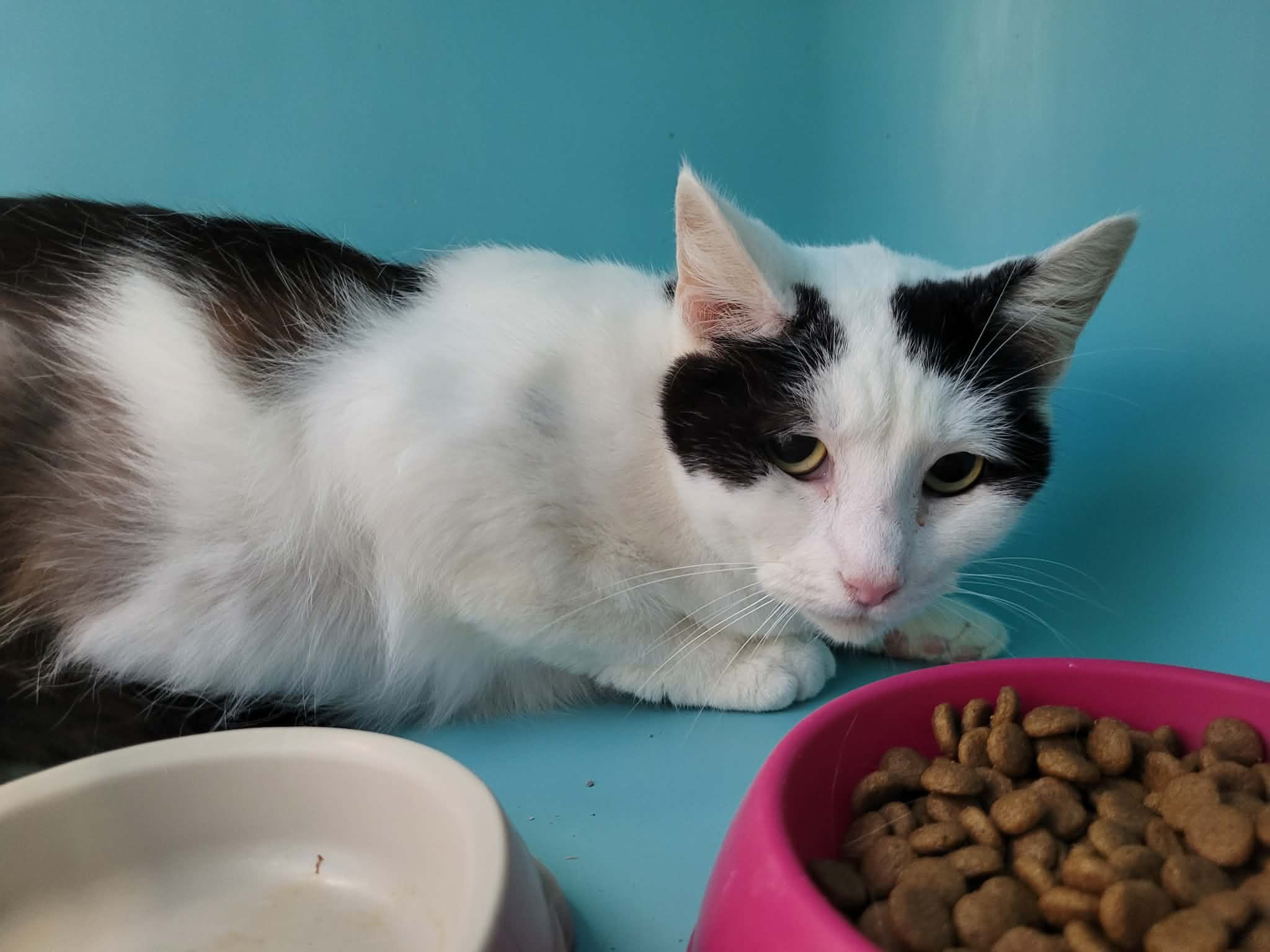 Panda est une minette arrivée chez nous avec onze congénères, et n’a jamais particulièrement connu de contact avec l’humain. Elle est encore assez craintive et délicate à approcher, mais finit par se laisser gratouiller doucement et à en demander un peu une fois que l’on prend le temps avec elle. Elle aura donc besoin d’encore un peu de patience et d’attention afin de s’ouvrir complètement.