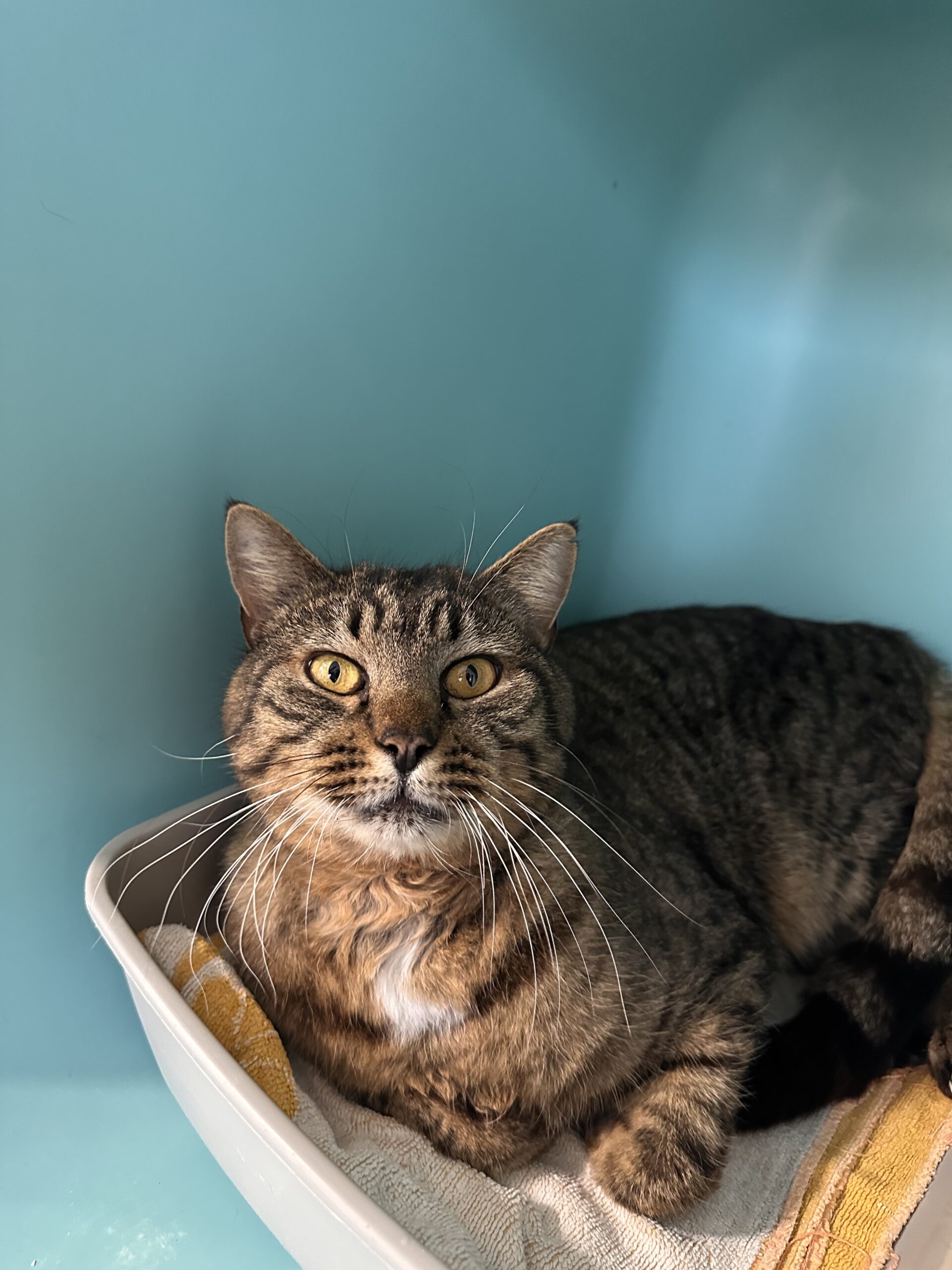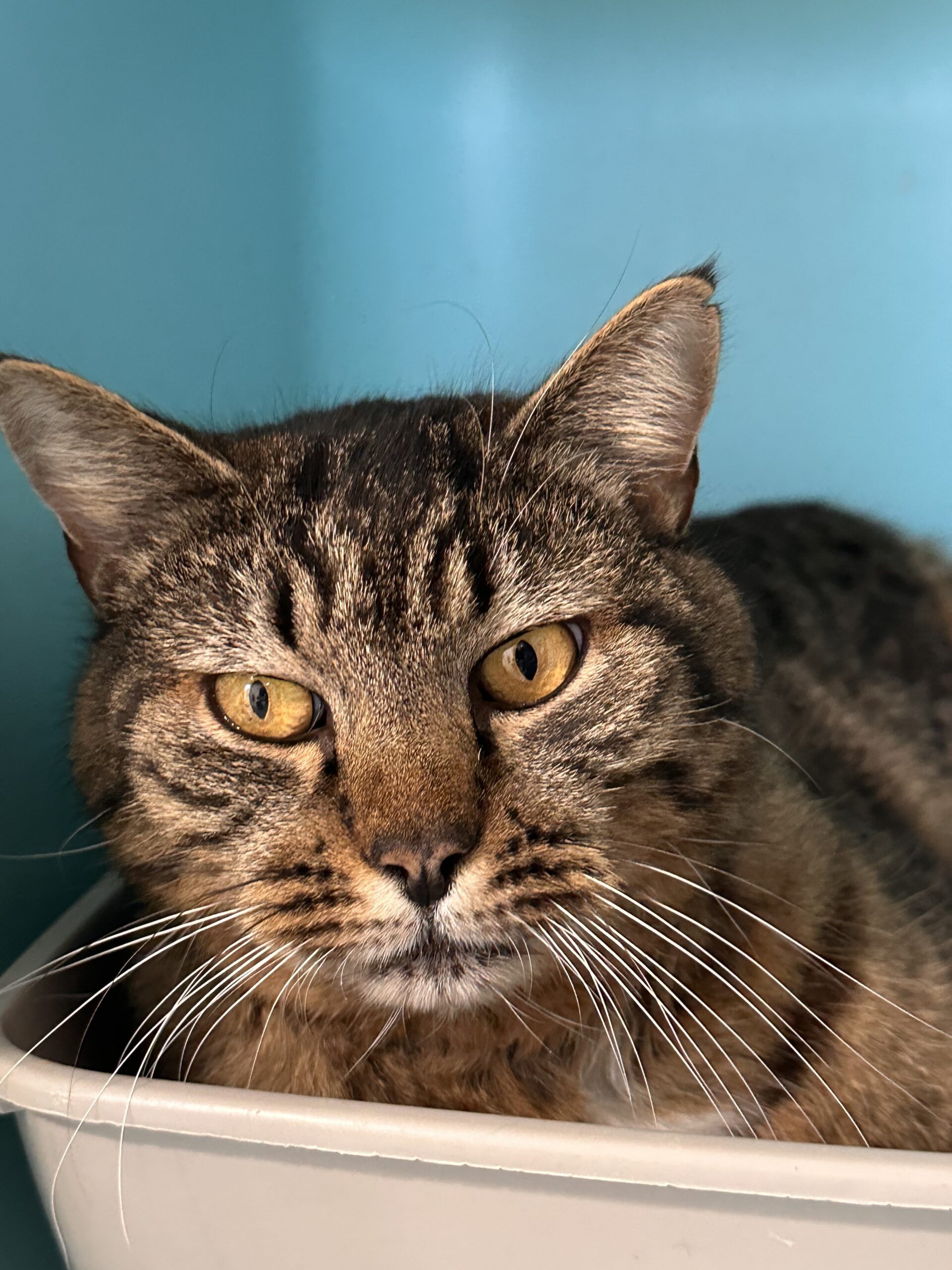 Patch est un grand chat tigré super gentil et très attachant! Adepte des caresses, il saura vous offrir pleins de ronrons!