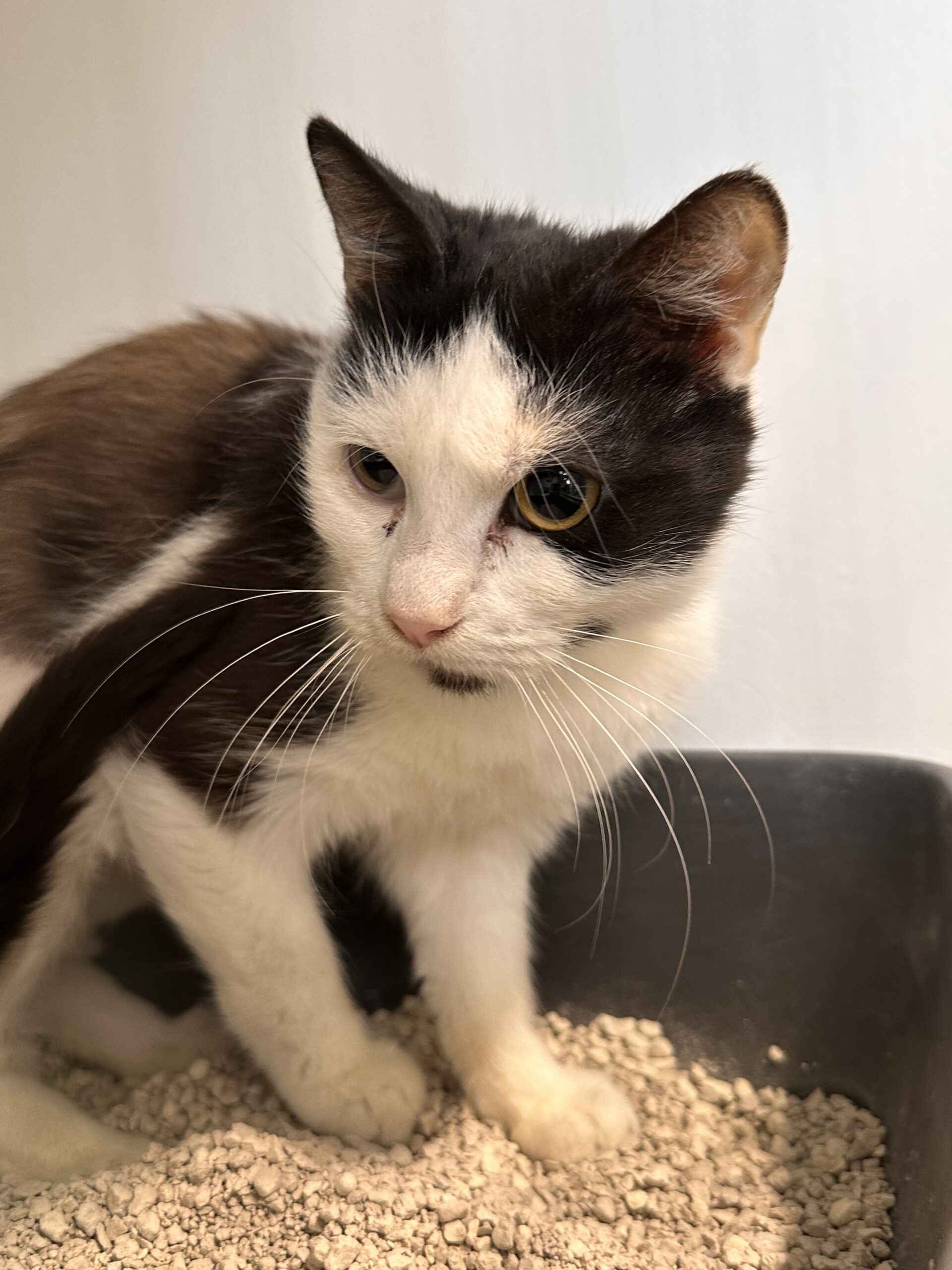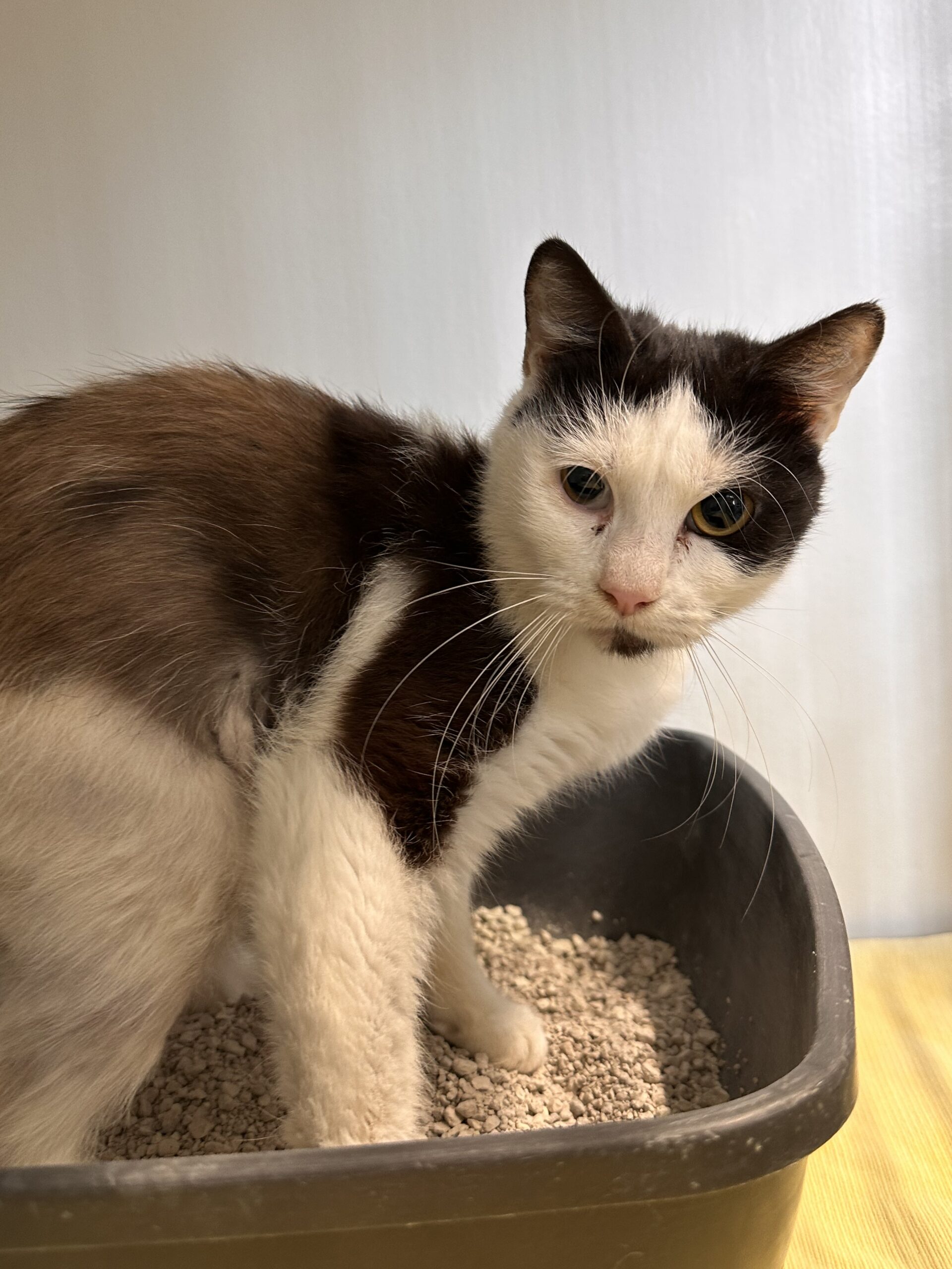 Sia est une chatte encore très craintive. Il faudra du temps et de la patience avant qu’elle se détende.